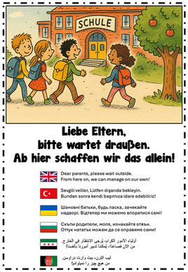 Auch beim Abholen warten die Eltern bitte draußen auf dem Hof oder vor der Schranke.